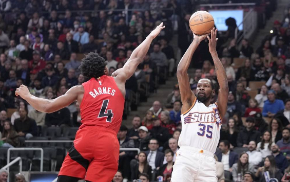 太陽隊首發:凱文-杜蘭特、尤素福-努爾基奇、約什-奧科吉、埃里克-戈登、德文-布克