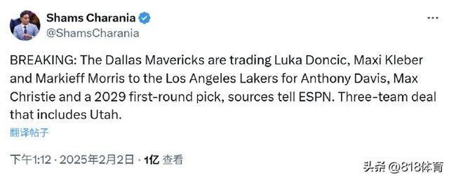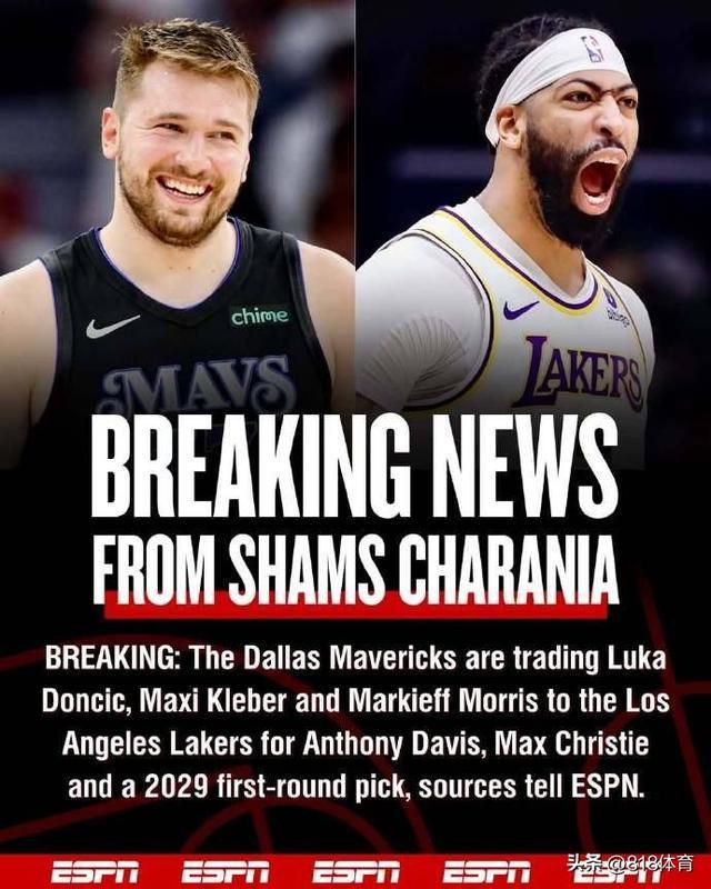 美國時間2月2日晚上,Shams在社交媒體上爆料了NBA歷史級重磅三方交易:東契奇加盟湖人,而濃眉前往獨行俠!