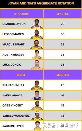 作為隨隊記者的布哈,也是預測了湖人眾將,下賽季出場時間情況,詹姆斯雖然跟湖人鬧得很不愉快,但大概率繼續留隊,而且詹姆斯被預測仍然要打33分鐘左右。此外三名新援艾頓、斯瑪特和拉拉維亞,或許都會被重用,其中艾頓是先發中鋒,另兩位作為重要輪換。